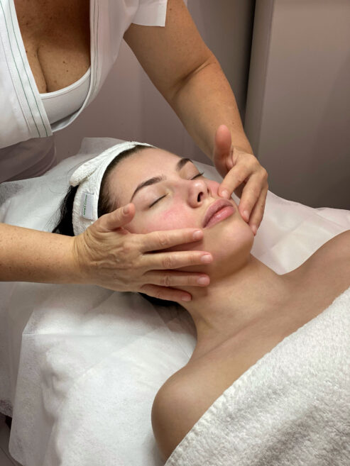 A session with our cosmetologist at our salon begins with facial cleansing. The skin is treated with cleansing gel and lotion. Thoroughly removing dirt and makeup is crucial.