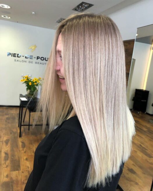 • Практичність. Якщо біля коренів волосся зберігся натуральний відтінок, частота повторних фарбувань значно зменшується.